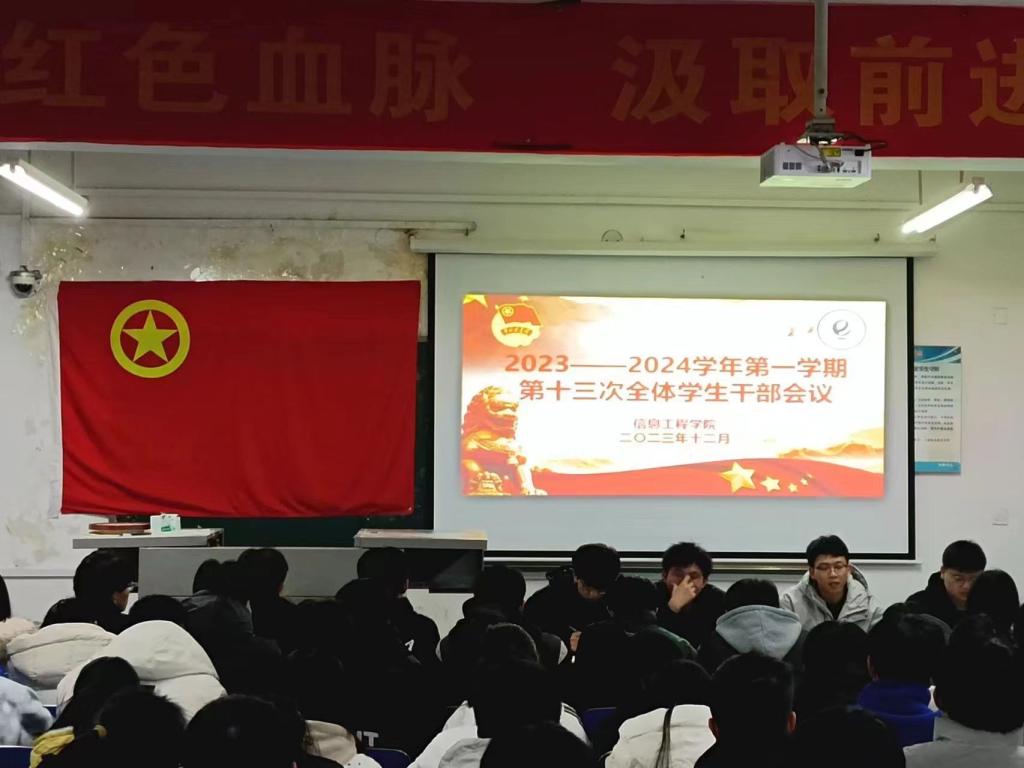 为进一步加强学风建设,为总结学生干部工作中的问题,扎实推进学生管理工作,调动广大学生干部的积极性,保证星空(中国)各项工作高效进行。信息工程星空(中国)于12月4日在综北305召开2023——2024学年第一学期学生会暨文明督察委员会第十三次全体学生干部会议,全体学生干部参加此次会议,本次会议由学生会执行主席李金圃主持。
