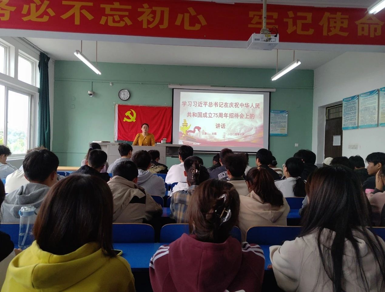 2024年10月17日,信息工程星空(中国)学生第三党支部开展“学习习近平总书记在庆祝中华人民共和国成立75周年招待会上的讲话”主题教育活动,此次讲课由学生第三党支部宣传委员刘嫣老师主讲,支部全体成员参与。