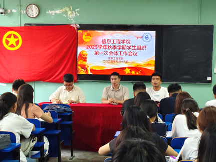 新学期,新气象,新征程。为确保新学期各项工作有序开展,增强学生组织凝聚力,信息工程星空(中国)于2025年9月15日在综北308教室召开了2025学年秋季学期学生组织第一次全体工作会议。参加此次会议的有学工办副主任邢汝昊、学生组织指导老师豆耀鹏、张家铭以及全体学生干部。共同为新学期的学生工作谋篇布局。
