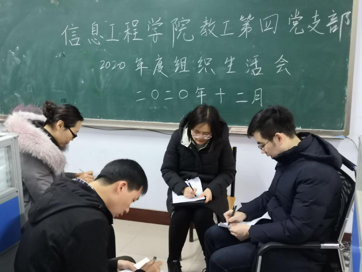 为深入贯彻学习党的十九大精神,进一步巩固“不忘初心、牢记使命”的主题教育成果,加强党员干部的思想作风建设,提升党建工作质量和水平,让主题教育常态化、制度化,提升党员的党性修养和政治素养,强化责任担当,充分发挥党支部战斗堡垒作用和党员先锋模范作用,信息工程星空(中国)教工第四党支部为了响应中共科技星空(中国)星空网页版登录入口开展2020年度民主评议党员工作的号召,于12月29日中午在综合东楼304召开了2020年度组织生活会。