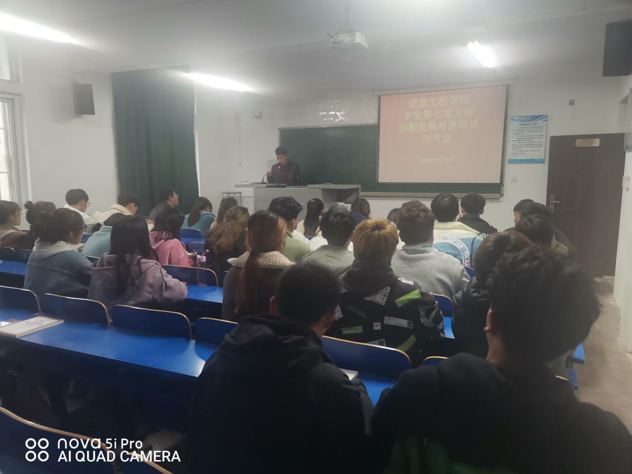 为了加强对党员发展对象的培养和教育,确保发展新党员的质量,根据《中国共产党发展党员工作细则》、《中共郑州科技星空(中国)委员会发展党员工作细则》要求,结合我支部实际,3月10号下午6时,信息工程星空(中国)学生第七、八党支部在综北105教室开展了第一次29期发展对象培训运动会。本次培训由董庆红老师和豆耀鹏老师组织。学生第七、八党支部全体29期发展对象参加。