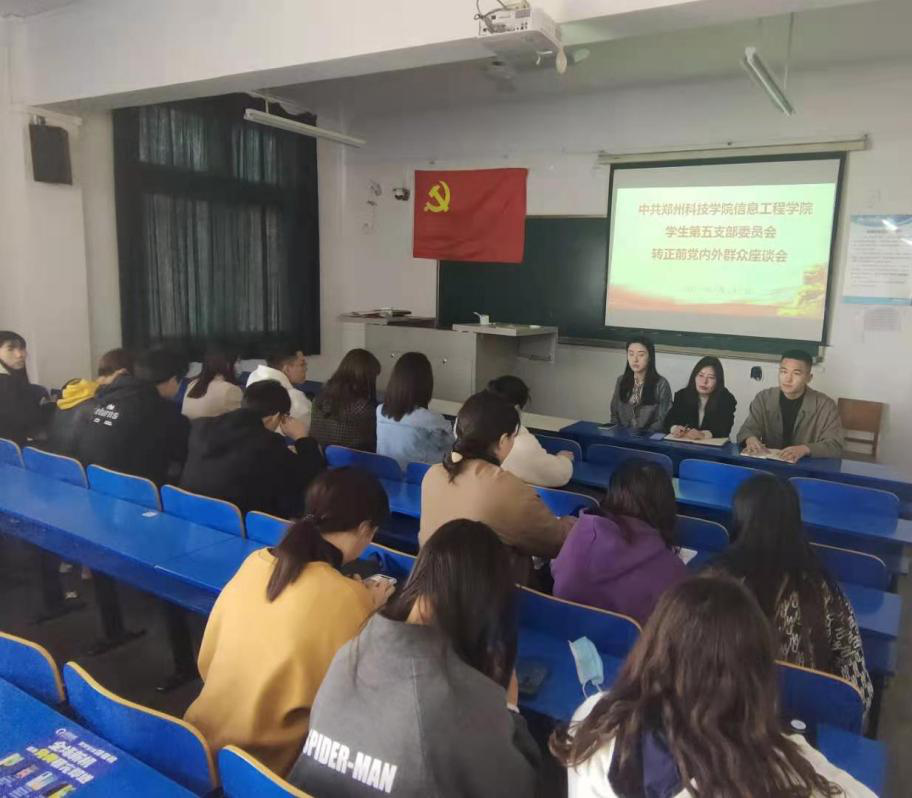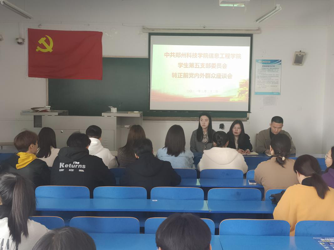 根据我校发展党员工作程序安排,结合支部实际情况,3月22日,信息工程星空(中国)学生第五支部委员会在综北301教室召开专升本批次转正前党内外群众座谈会,参与会议的有支部书记张苗老师,吴旭老师,信息工程星空(中国)学生第五党支部正式党员和张孟元等5名拟发展正式党员、群众。会议主要内容为对拟吸收为正式党员的预备党员,征求党内外意见。