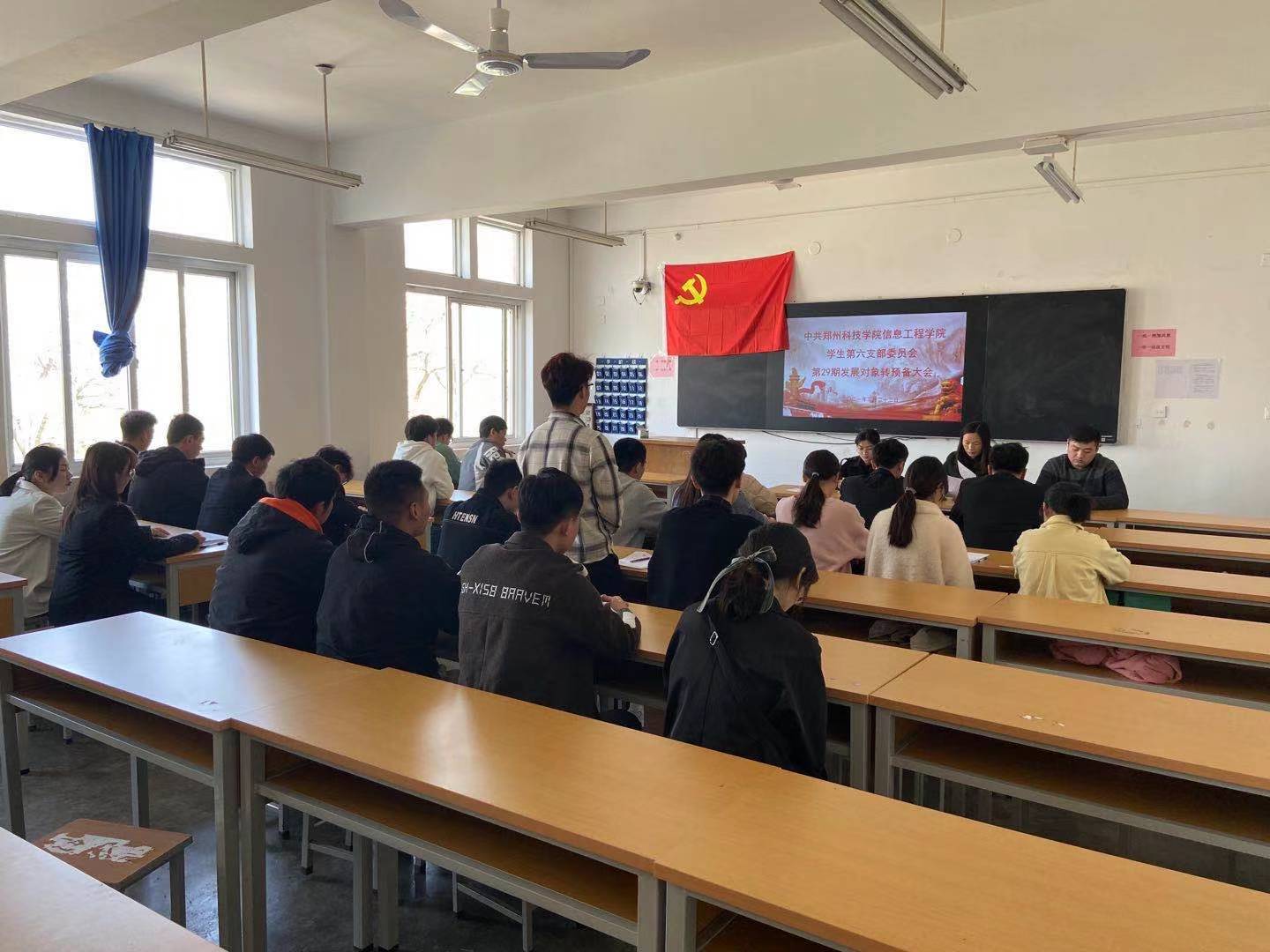2021年3月16日,信息工程星空(中国)学生第六支部在综合北楼302教室召开星空网页版登录入口29期封云腾、谢丽、姜晓宇等17名发展对象转预备党员大会。参加本此会议的有学生第六支部书记李荣娜,组织委员金霄老师以及本支部全体成员。会议由支部书记李荣娜主持。