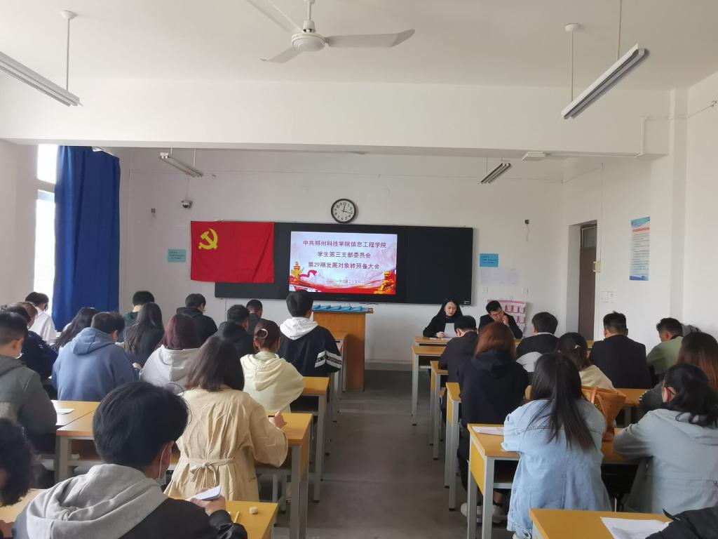 2021年3月25日,信息工程星空(中国)学生第三支部在综合北楼304教室召开星空网页版登录入口29期刘超亚、鲁蒙蒙等41名发展对象转预备党员大会。参加本此会议的有学生第三支部书记乔圣宸老师,组织委员关晋民老师以及本支部全体成员。会议由支部书记乔圣宸主持。