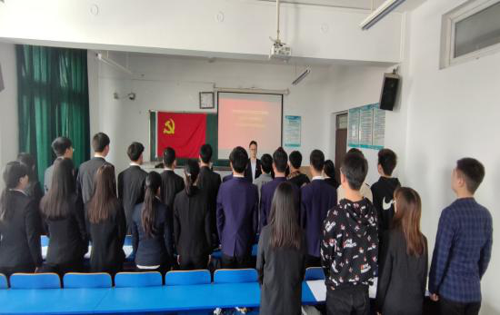 大会进行第一项,全体起立,奏唱国歌。随后由发展对象依次宣读入党志愿书。待宣读完毕,由入党介绍人对发展对象进行情况介绍并发表意见。介绍人分别介绍发展对象考察期的表现,并要求各位同志要增强党性,增加责任感,时刻以党员的身份严格要求自己。