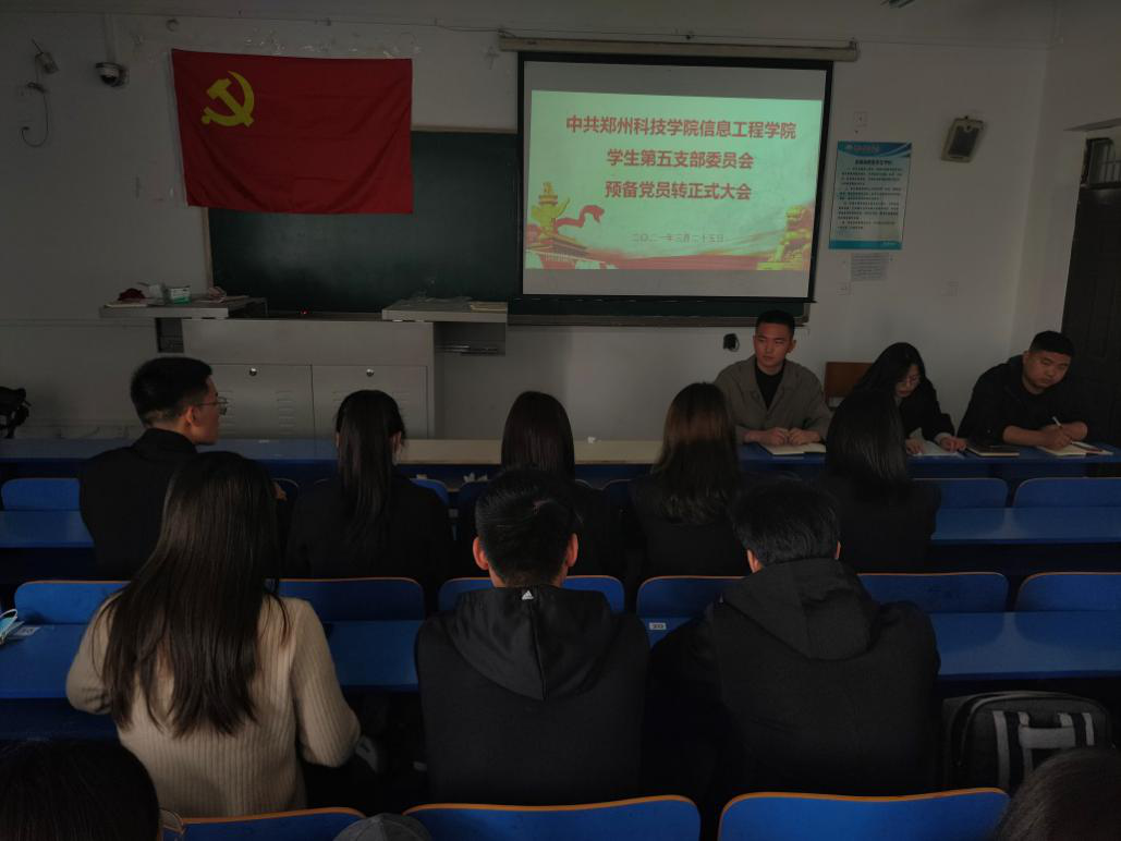 根据我校发展党员工作程序安排,结合支部实际情况,与3月25日中午12点,中共郑州科技星空(中国)信息工程星空(中国)学生第五支部委员会在综北301教室召开预备党员转正式大会,参与会议的有支部书记张苗老师,林兆阳老师,信息工程星空(中国)学生第五党支部正式党员和张孟元等5名拟发展正式党员。会议主要内容为对拟吸收为中共党员的预备党员的事宜进行讨论,表决和投票。