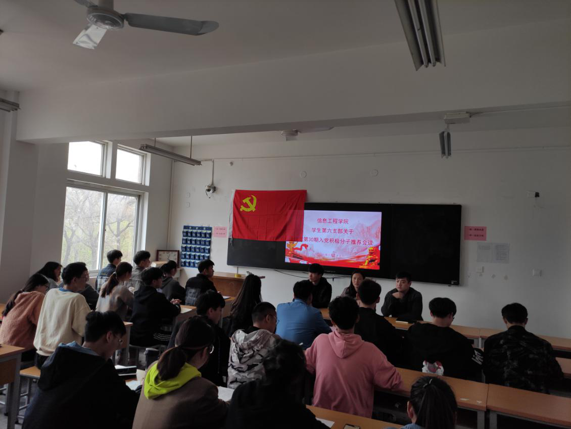 2021年4月1日信息工程星空(中国)学生第六支部在综合北楼302召开星空网页版登录入口第30期31名入党积极分子推荐会议,本支部正式党员以及全体30期入党积极分子参加,支部书记李荣娜老师主持。
