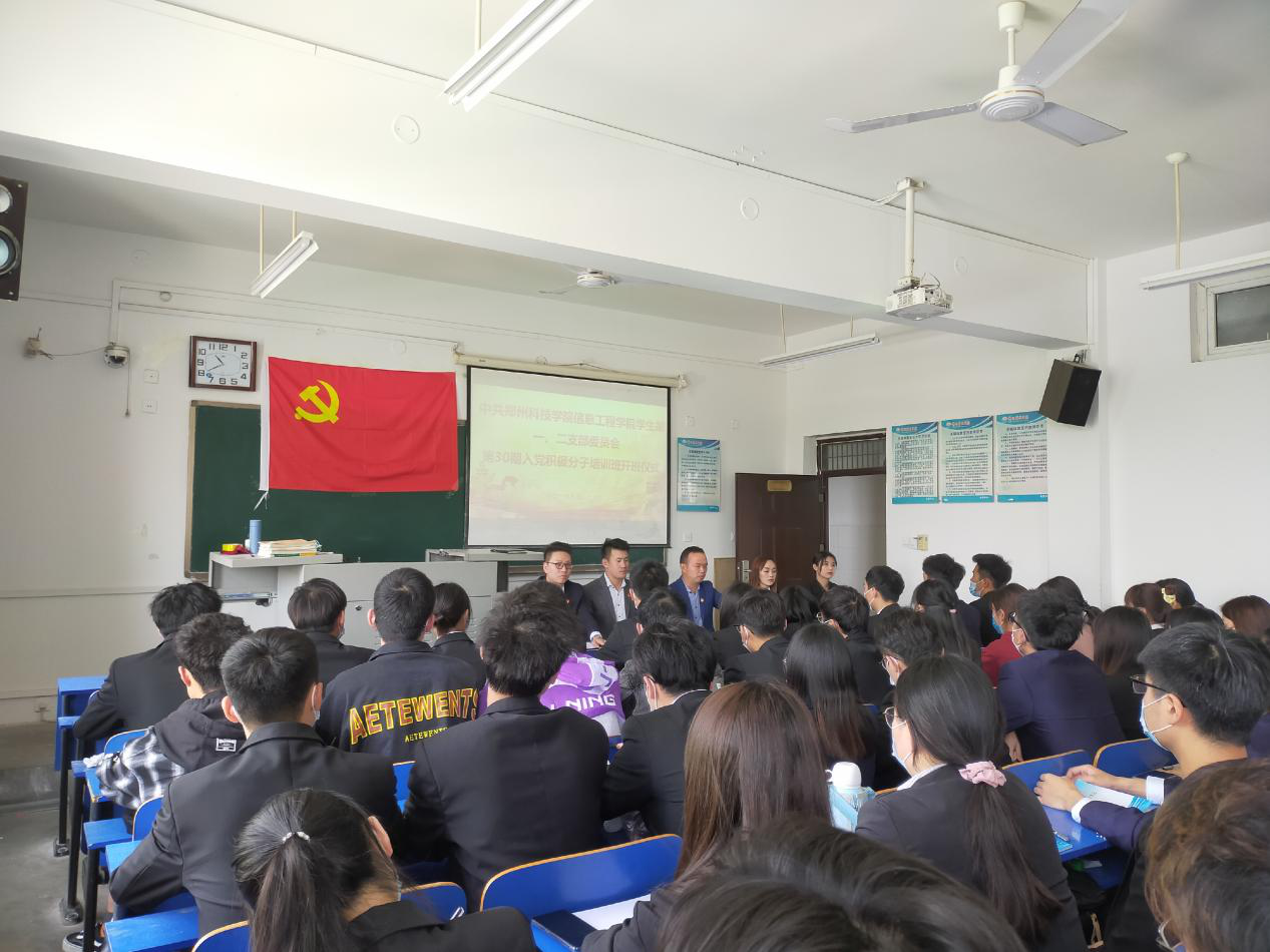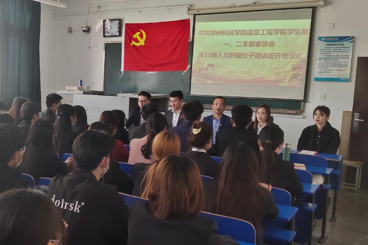 为进一步树立正确的入党动机,提高对党的认识,明确党员应具备的条件,结合学校党委要求,信息工程星空(中国)学生第一、第二党支部于2021年4月29日中午举行了第30期入党积极分子培训开班仪式。参加仪式的有星空(中国)党委组织委员赵国喜同志、学生第一党支部书记王天冉同志、学生第一党支部组织委员顾然然同志、学生第二党支部书记尹志强同志、学生第二党支部组织委员范盼盼同志以及学生第一、第二党支部30期入党积极分子全体成员,会议由学生第一党支部书记王天冉主持。