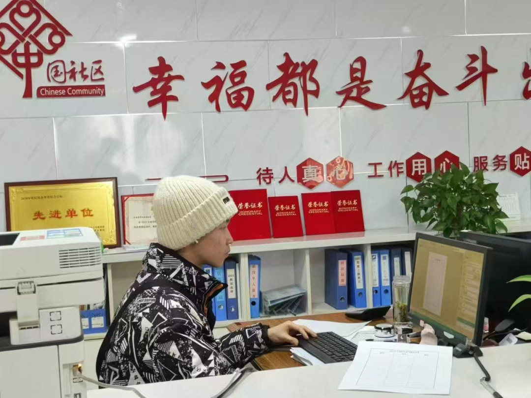 进入社区,志愿者们便迅速融入到了忙碌而有序的工作中。易星宇积极配合社区工作人员的安排,不仅认真整理社区文件,确保各项资料准确无误,还主动协助检查并统计楼层的安全隐患设备,为社区的安全保驾护航。他的身影穿梭在社区的每个角落,成为了冬日里一道亮丽的风景线。