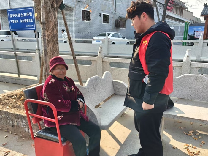 为了增强个人安全意识,减少交通事故,营造文明交通氛围,促进社会和谐,推动法规落实。李昊阳和志愿者团队成员前往城市交通枢纽、集市等人员密集场所,向过往行人宣传交通安全知识,提醒大家遵守交通规则,佩戴好头盔,不闯红灯。 为了强化对老人尊敬关爱意识,进一步弘扬中华民族传统美德,在社区形成“爱老、敬老、助老”的良好氛围,走进社区,李昊阳怀揣着热忱与温暖,去问候老人。询问他们目前的家庭和身体情况,同时叮嘱他们要照顾好自己并致以新年最真挚的祝福。