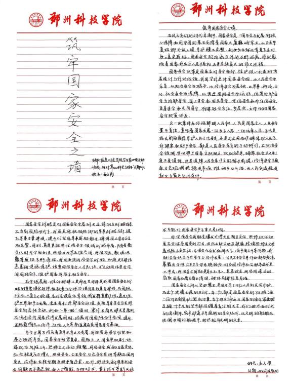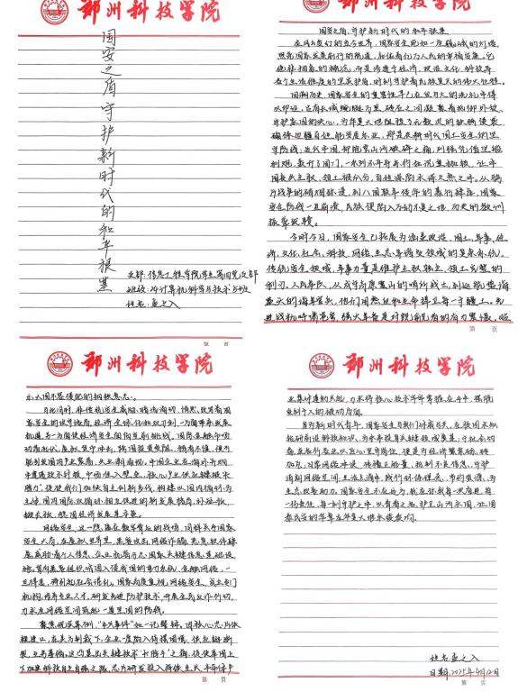 支部成员们的作品字体工整、词句优美,通过国防知识讲解与实践案例分析,助力学生们构建较为完整的国家安全知识体系,进一步增强国防意识,树立正确的国家安全观。