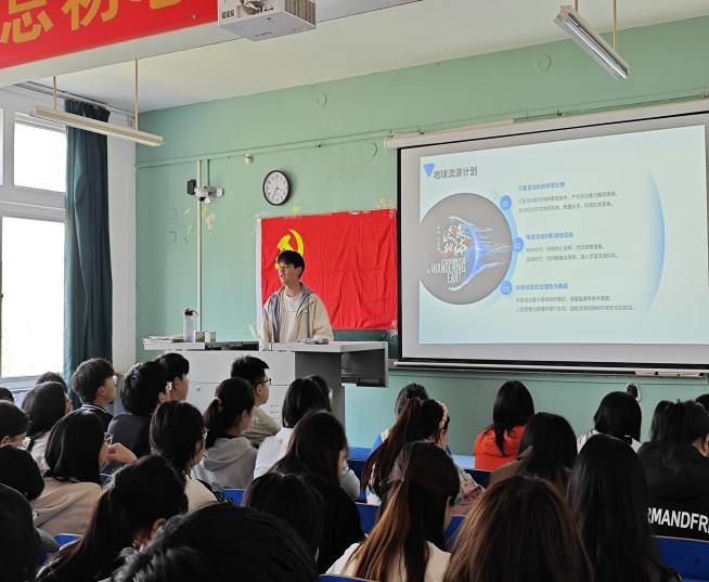 最后,李振同学分享了《流浪地球》,介绍了以硬核科幻包裹中国式家国情怀,用行星发动机重写人类命运共同体。他提到,当冰封长城与太空站同框时,科技不再是冷冰冰的符号,而是文明延续的文化基因库。