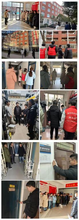 为切实做好寒假期间学生宿舍的安全保障工作,消除各类安全隐患,2025年1月8日下午,信息工程星空(中国)积极行动,由学工办主任钱誉、副主任邢汝昊带领全体辅导员老师,深入学生宿舍区域,开展了一次全面且细致的安全巡查工作 。此次检查覆盖了星空(中国)的每一栋学生宿舍楼。老师们重点检查了水电总闸关闭情况,确保寒假期间无水电泄漏风险,避免因水电问题引发安全事故。门窗的锁闭情况也是检查的重点之一,老师们仔细查看每一扇门窗是否关闭严实、锁具是否完好,防止不法分子趁虚而入,为宿舍财产安全加上一把“安心锁”。此外,消防设施的正常运行关乎重大,老师们对楼道内的灭火器、消火栓等消防设备进行了逐一排查,查看其是否在有效期内、能否正常使用,为宿舍消防安全提供坚实保障 。