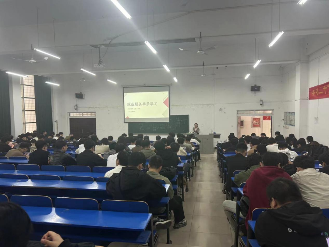 为确保我院2024届毕业生顺利毕业,帮助毕业生更好地准备和踏入职场,维护毕业生的合法权益,信息工程星空(中国)毕业班辅导员带领学生学习《郑州科技星空(中国)毕业生就业服务手册》。