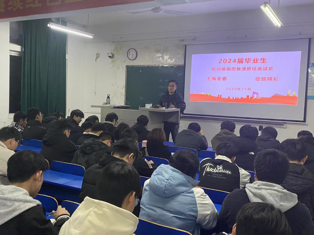 本次会议旨在通过对就业面试环节与简历设计环节的讲解,让同学们充分认知自身实际情况,全面思考面试过程中可能会出现的情况与自我心理调整方式,最后段老师嘱托大家,调整好自己的心理状态,严肃深刻的对待自身的就业与发展,一定勇于尝试,做好心理调节,多加积累经验,并表示希望同学们都能够得到好的就业机会,实现自身职业发展规划的“开门红”。