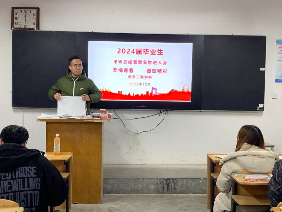12月24日下午,随着最后一门考研科目结束,这场从春季开始编织的梦,在寒冬凛冽时盛开。20级计算机科学与技术11-17班考研学子在辅导员段传收老师的带领下于综合楼召开“无悔青春,绽放精彩”主题考研总结暨就业推进大会。本次会议段传收老师主要为大家总结了上一阶段考研历程中的种种,并衔接当前所面临的就业实习工作做出了进一步的指示与推进。