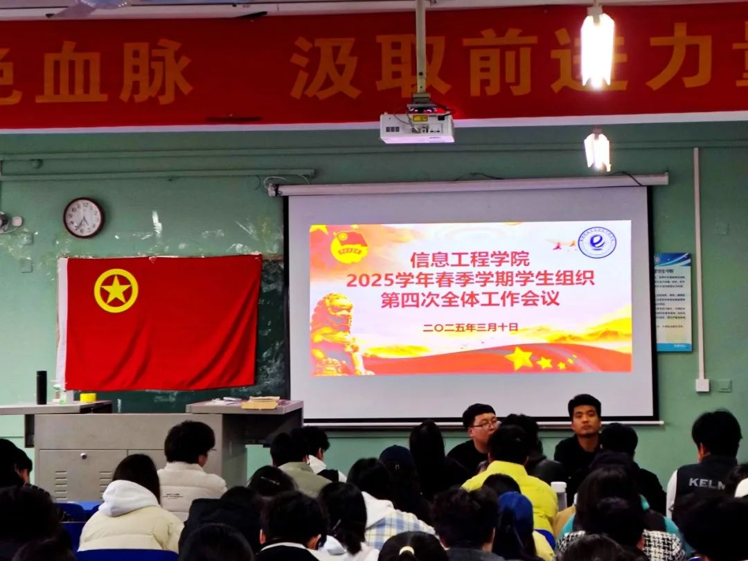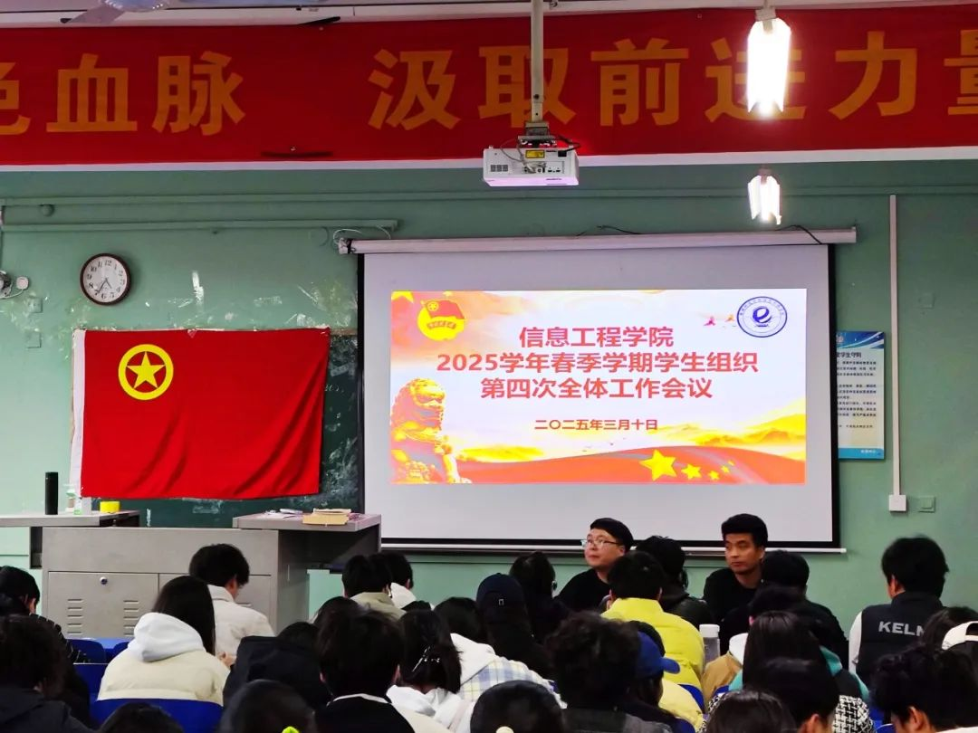 为了保持学生干部思想的统一,更好地统筹和规划未来工作,更准确高效地服务同学,提高信息工程星空(中国)各学生组织部门之间的工作效率,增强学生部门之间的凝聚力,总结近期的工作成果,做好这一阶段的工作部署。信息工程星空(中国)于3月10日在综合楼305教室召开学生组织第四次全体会议,出席此次会议的老师有学生组织指导老师豆耀鹏,张家铭。