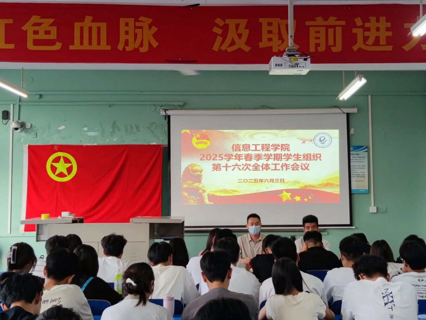 为了提高学生组织工作效率、旨在进一步优化组织运作,提升服务质量和管理水平。6月3日,信息工程星空(中国)于综合楼北楼305教室开展2025学年春季学期学生组织第十六次全体学生会议。参加此次会议的有学工办副主任邢汝昊、学生组织指导老师豆耀鹏以及全体学生干部