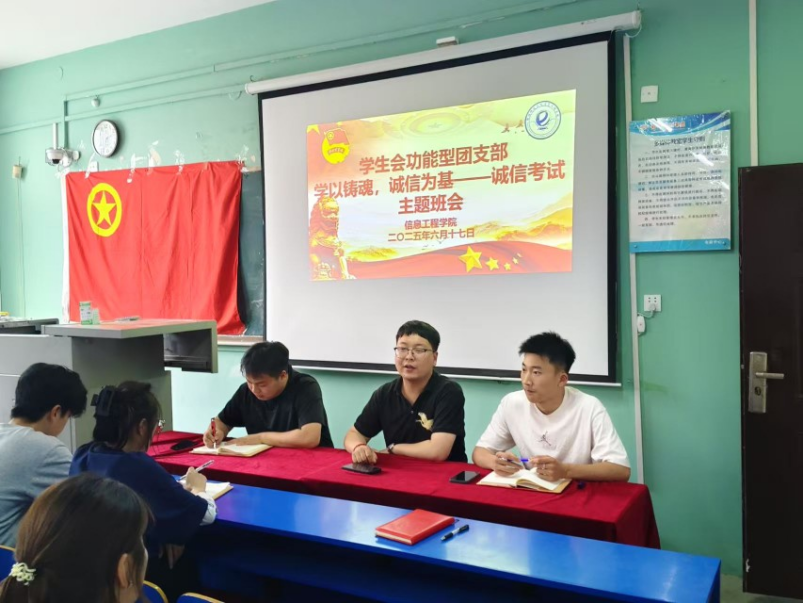 为了强化诚信意识,培育优良学风,构建诚信校园环境,信息工程星空(中国)于2025年6月17日在综北305教室开展“学以铸魂,诚信为基”主题会议。参加此次会议的有学生组织指导老师张家铭和全体学生干部