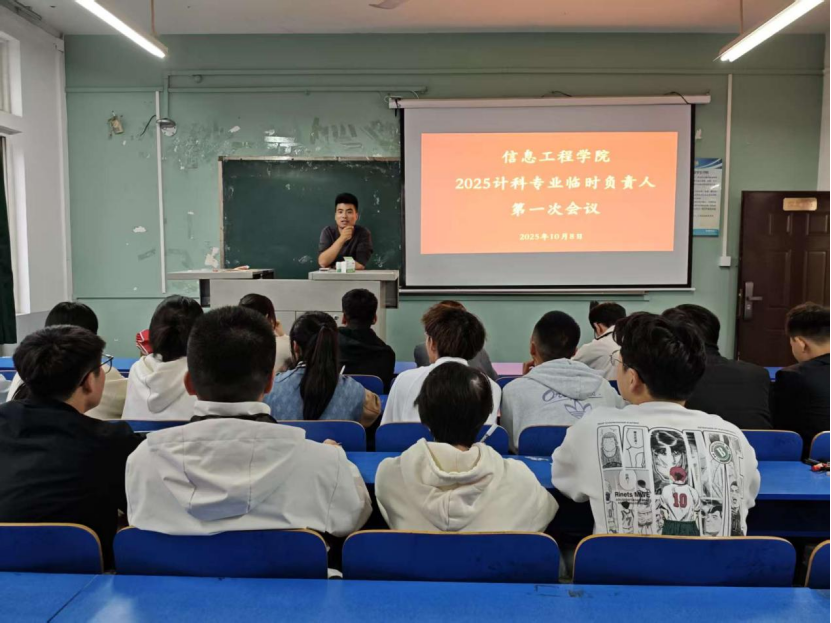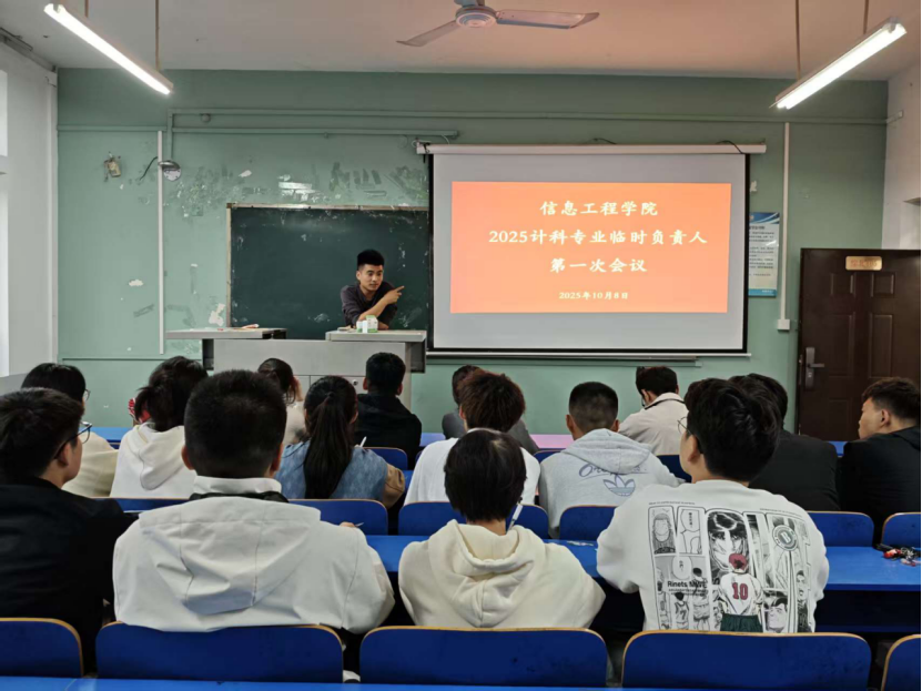 新学期伊始,为确保2025级计科专业新生能快速适应大学学习与生活,及时解决开学初期可能出现的各类问题,2025年10月8日,信息工程星空(中国)召开2025计科专业临时负责人第一次会议。本次会议由2025级新生辅导员豆耀鹏老师主讲,全体2025级计科专业临时负责人参会。
